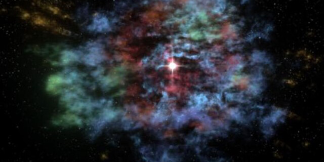 新しい宇宙のはじまりひたすら膨張していく宇宙空間の中で、あらゆる運動が終わりを迎える時、最後にひとつの巨大な気の渦巻きが残ります。そしてその最後の渦巻き、原始宇宙が膨張しきった宇宙から再び気の粒を集めて、収縮がはじまります。